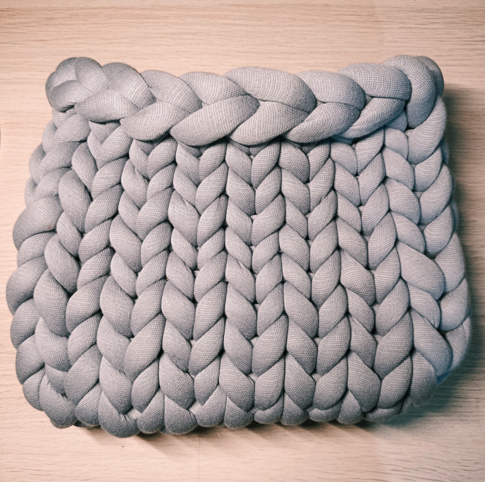 Χειροποίητη πλεκτή τσάντα με νήμα marshmallow σε γκρι χρώμα . 25Χ35 εκ. φοδραρισμενη, κλείνει με μαγνητάκι.