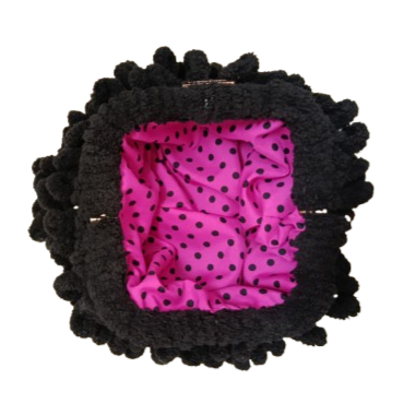 Πλεκτό puffy τσαντάκι με αλυσίδα. Φοδραρισμένο. Σε μαύρο χρώμα. Διαστάσεις 20Χ30 εκ.Δώρο λαστιχάκι μαλλιών.